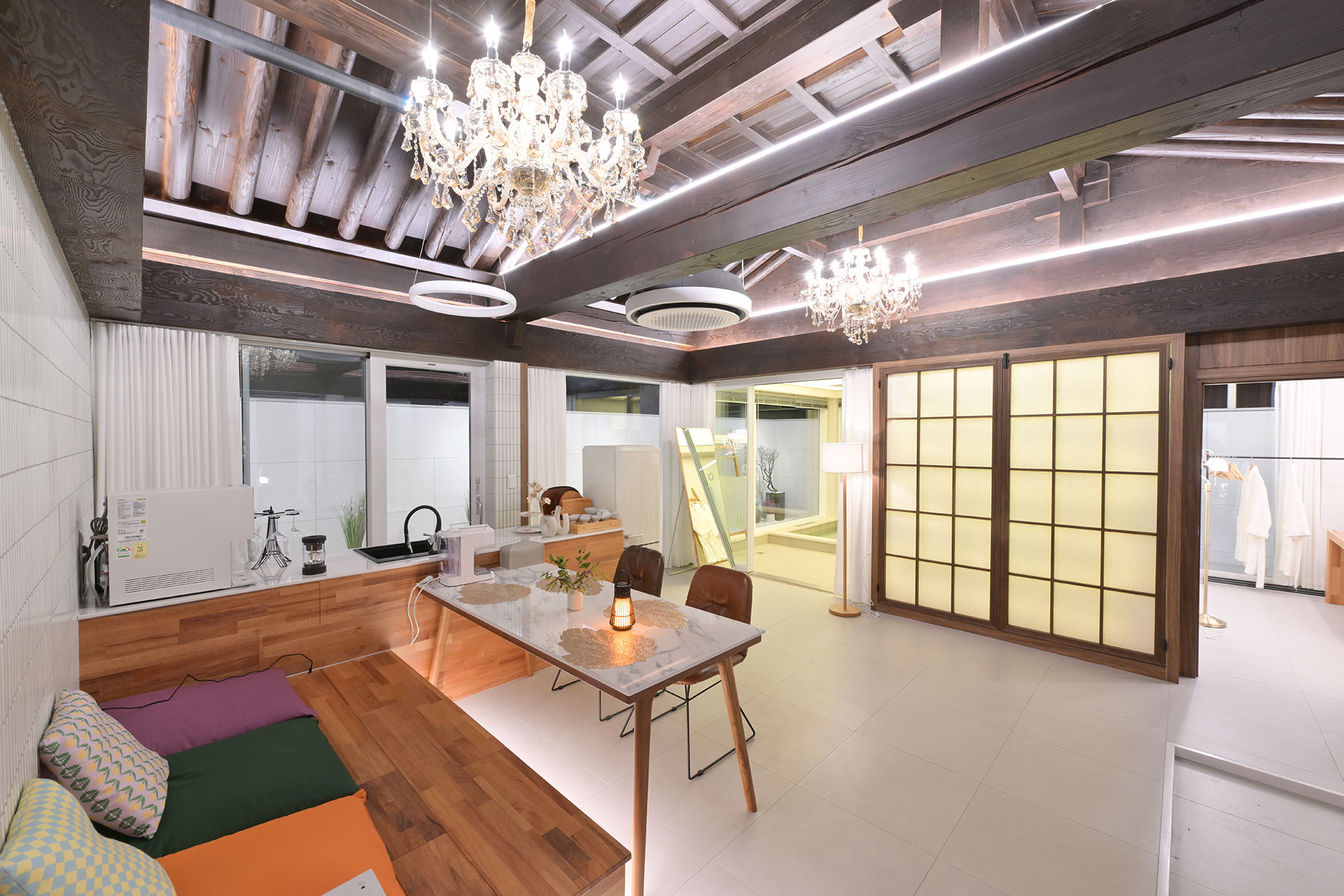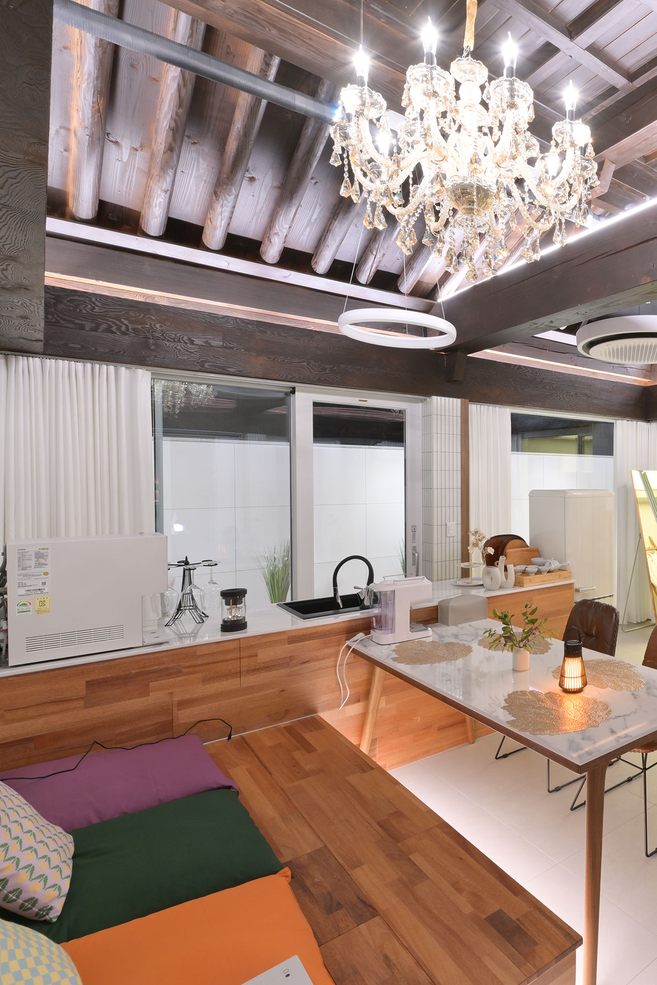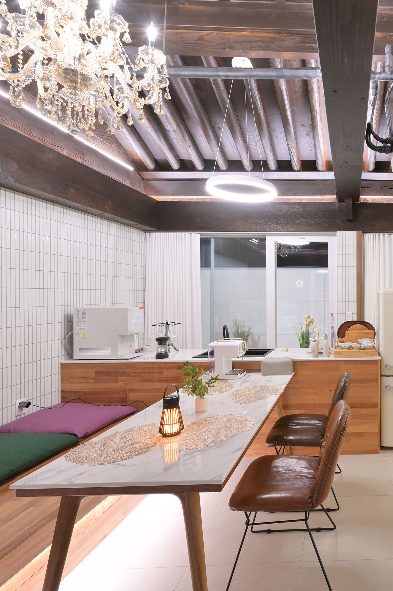 그루잠은 정남향의 집 입니다. 하루종일 햇살가득한 넓은거실에 식탁또한 넓어요 이곳에서 여행에 함께한 모든분이 모여서 맛있는 음식도 시켜놓고 여행의 즐겁고 좋은 추억도 만들어 보세요.